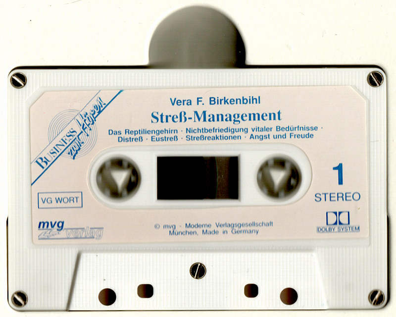 Mit dem Start ihres Eigenverlags gelang Vera F. Birkenbihl die Neu-Veröffentlichung eines kleinen, 25-Seiten starken Beviers mit dem Titel „Freude durch Streß“, das zuvor bereits im Münchner WRS-Verlag in zwei Auflagen erschienen war. VFB überarbeitete und ergänzte ihr Werk, so dass es 1979 vom mvg-Verlag im Verlag Moderne Industrie, München/Landsberg (heute: Münchner Verlagsgruppe GmbH) als Lizenz des A-Verlages unter dem gleichen Titel erscheinen konnte, nun jedoch 153 Seiten stark als „echtes“ Buch. Doch erst im Jahre 1992 veröffentlichte mvg im Rahmen seiner Serie „Business zum Hören“ eine Tonkassette unter dem Titel „STRESS-MANAGEMENT – Freude durch Stress“ im Form einer Autorenlesung, also im O-Ton von VFB eingesprochen im Jahr zuvor. Aus dem Werbetext: